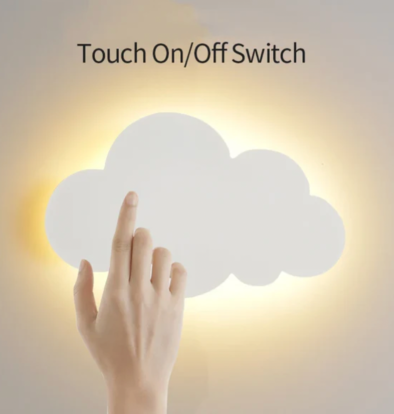 Elevate the ambiance of your space with the touch-activated cloud Wall sconce. This whimsical lighting fixture combines modern functionality with playful design, making it a perfect addition to bedrooms, nurseries, and cozy living areas. Crafted with a soft, cloud-shaped silhouette, the lamp provides a gentle, diffused light that creates a warm and inviting atmosphere. The intuitive touch on/off switch adds a touch of modern convenience, allowing you to effortlessly control the lighting with a simple tap. Embrace a blend of creativity and practicality with this charming cloud lamp, ideal for enhancing any room with a touch of light and joy.