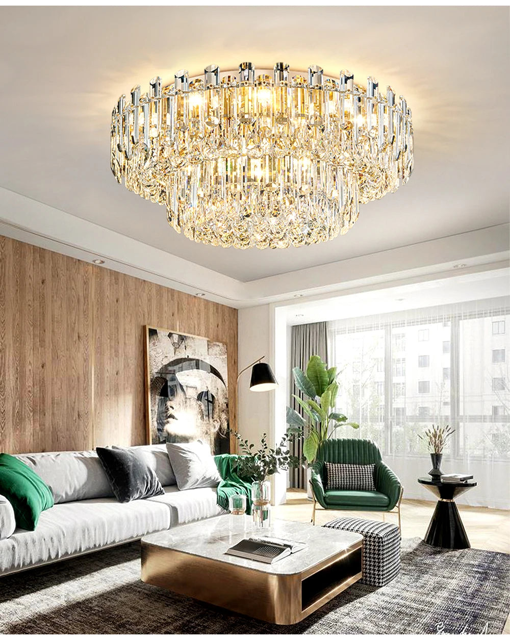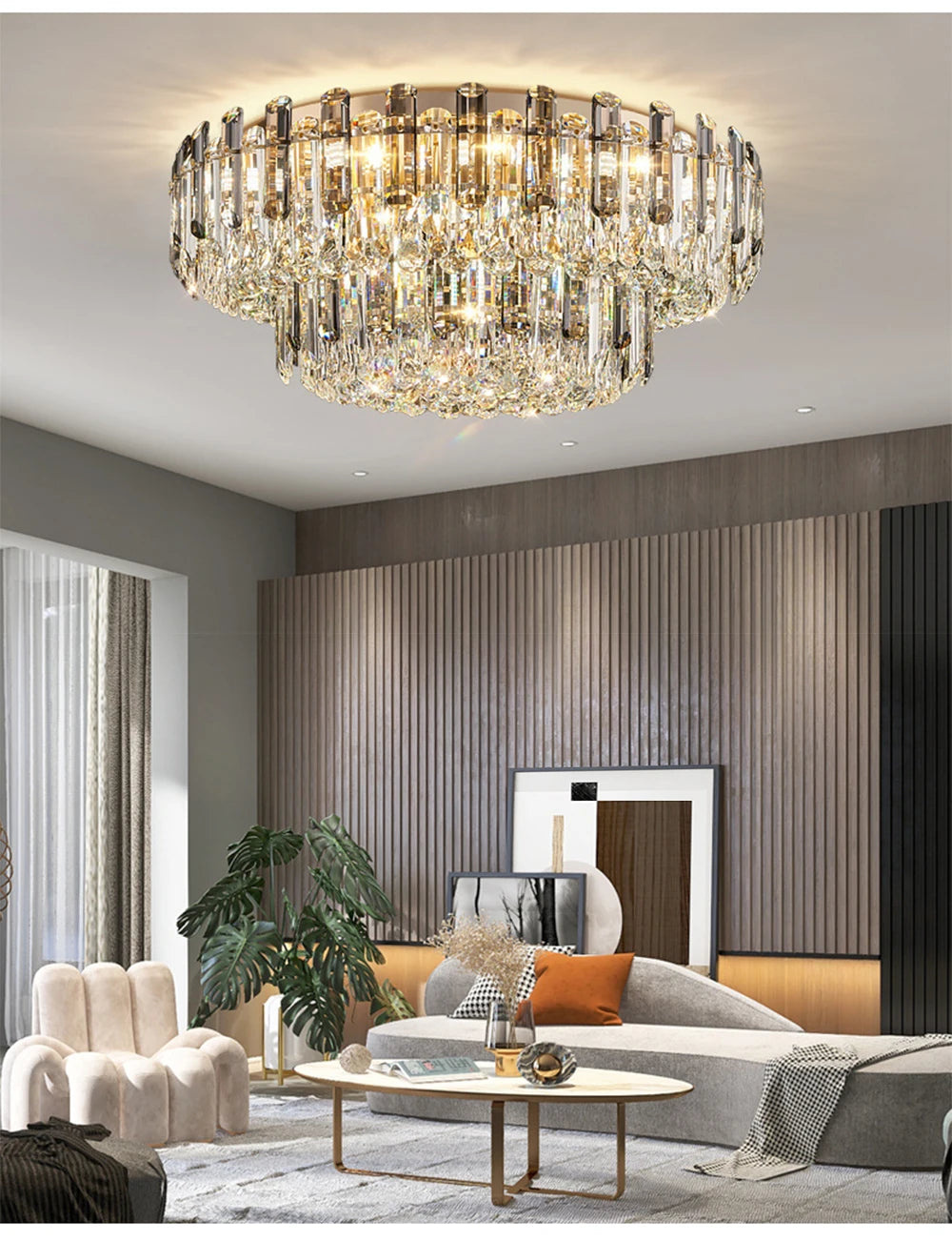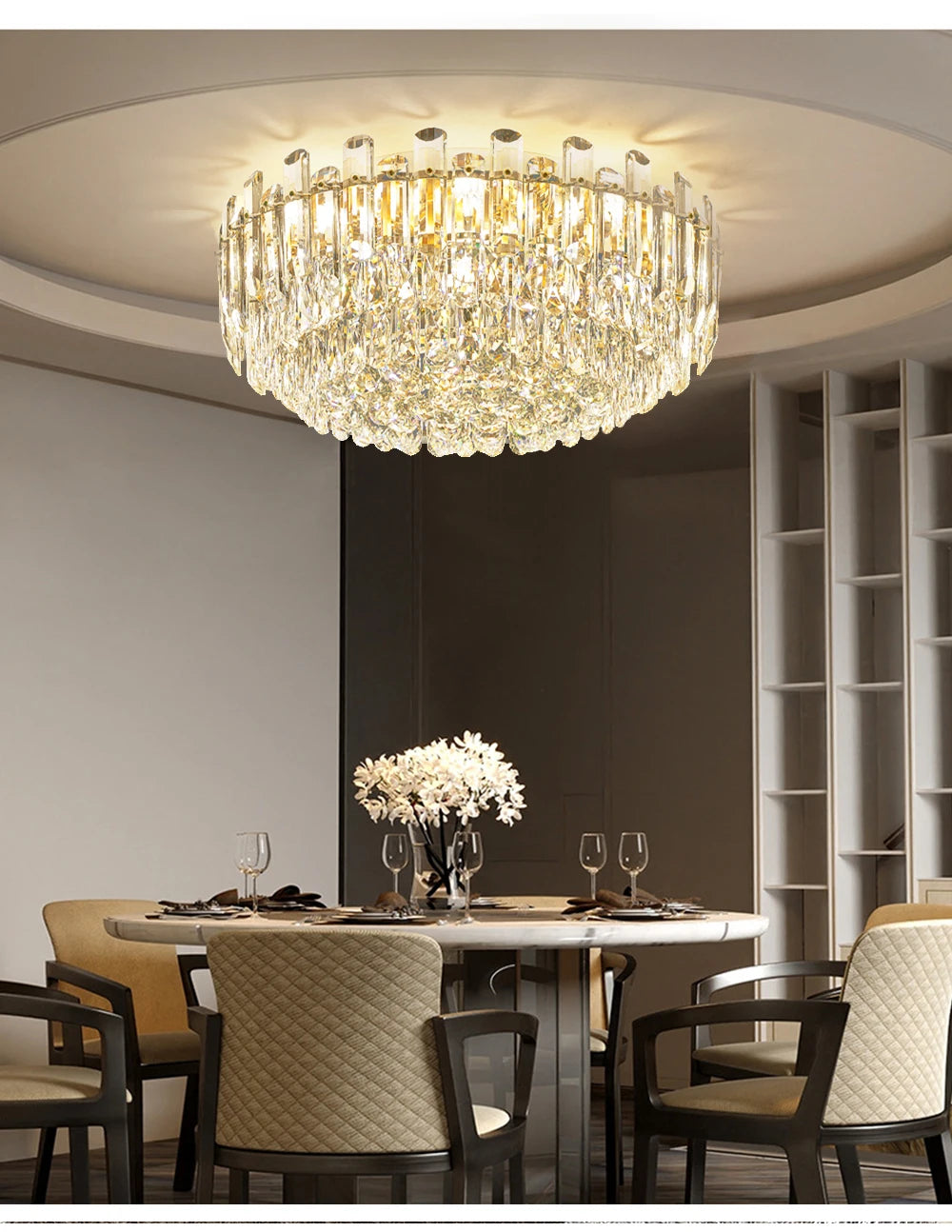 I'm absolutely delighted with this luxury ceiling lamp! The combination of durable aluminum, crystal, and sleek iron finish creates a stunning piece that elevates my living room's décor. The round design fits perfectly, and the ambient lighting adds warmth and sophistication. I love how it complements my interior style without overpowering it. The craftsmanship is exceptional - durable, refined, and utterly beautiful. A true masterpiece!