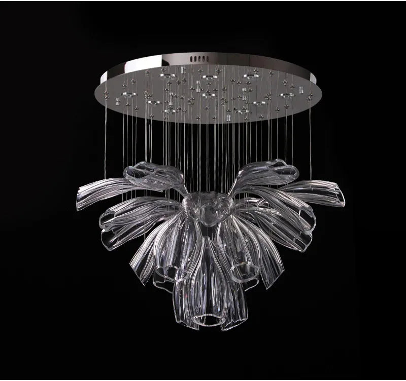 Make a statement in your living room with this stunning modern big glass chandelier. Featuring a luxury silver finish and LED lighting, this hanging lamp is perfect for indoor spaces. The creative design and sleek aesthetic make it a show-stopping centerpiece for any room.