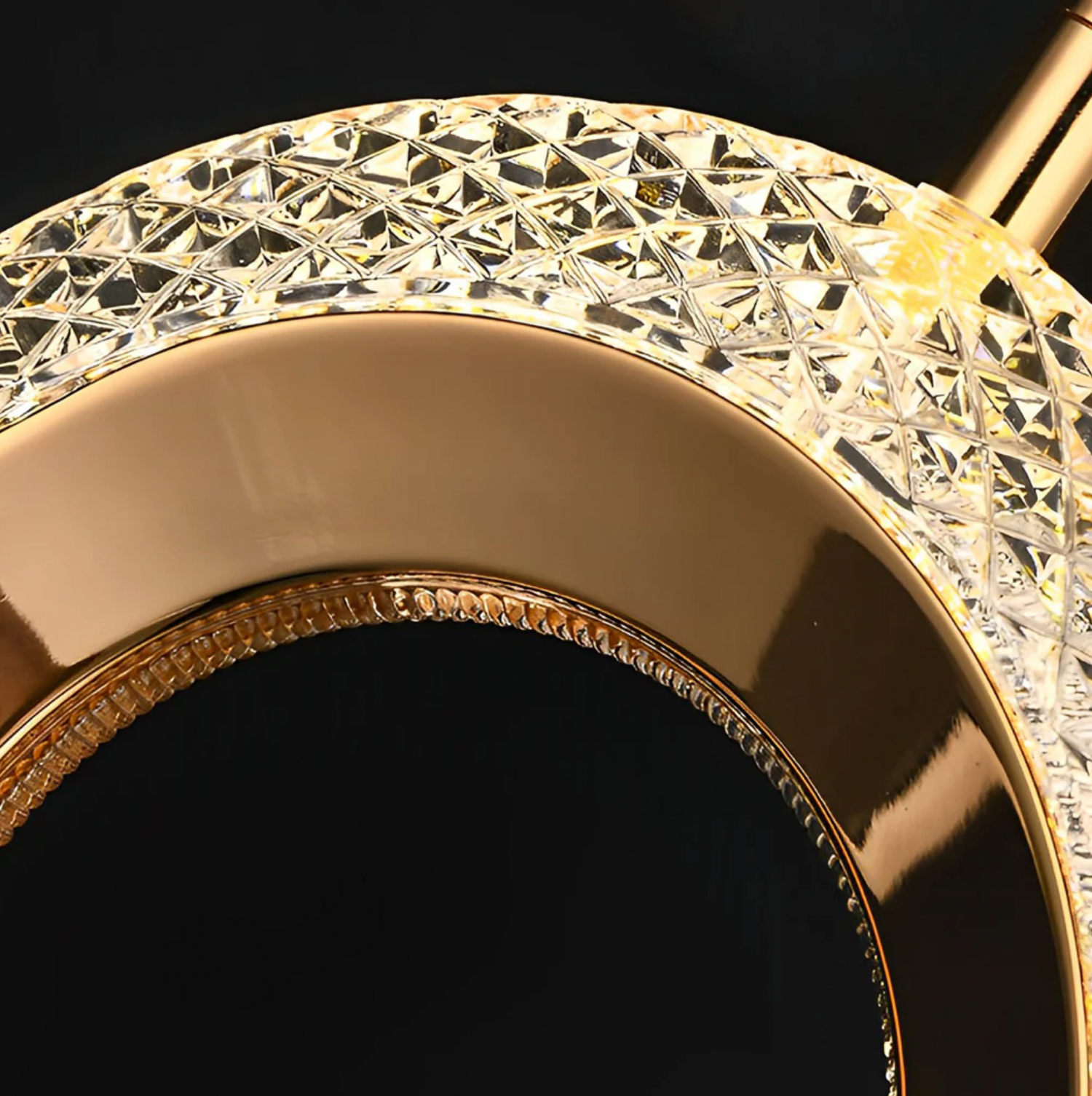 Elegant Design. The Crystal Halo Pendant Light stands out with its unique combination of intricate crystal detailing and a sleek gold finish. This design not only adds a touch of luxury but also creates a stunning focal point in any room, transforming your space with its sophisticated charm.