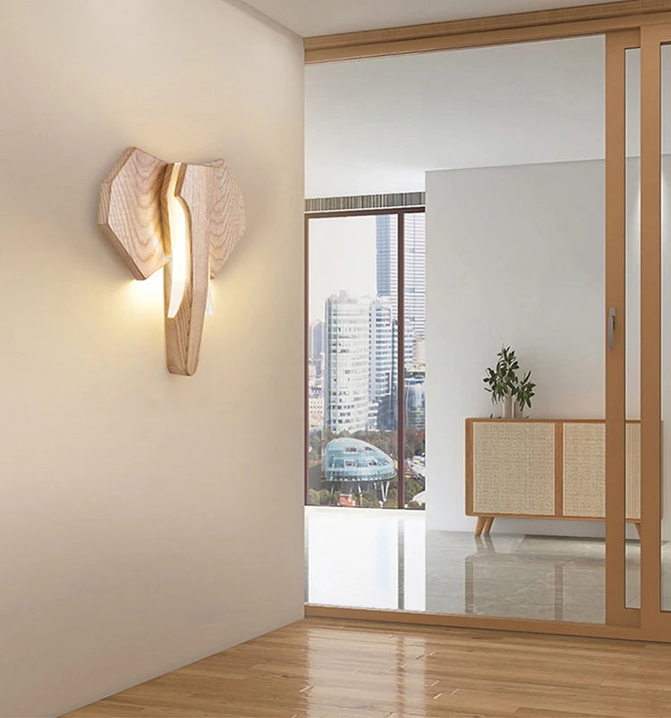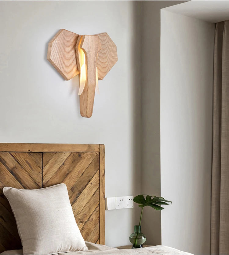 Handcrafted Ashwood Design: This sconce features a finely crafted elephant head design, made from premium ashwood that highlights the natural beauty and grain of the wood.