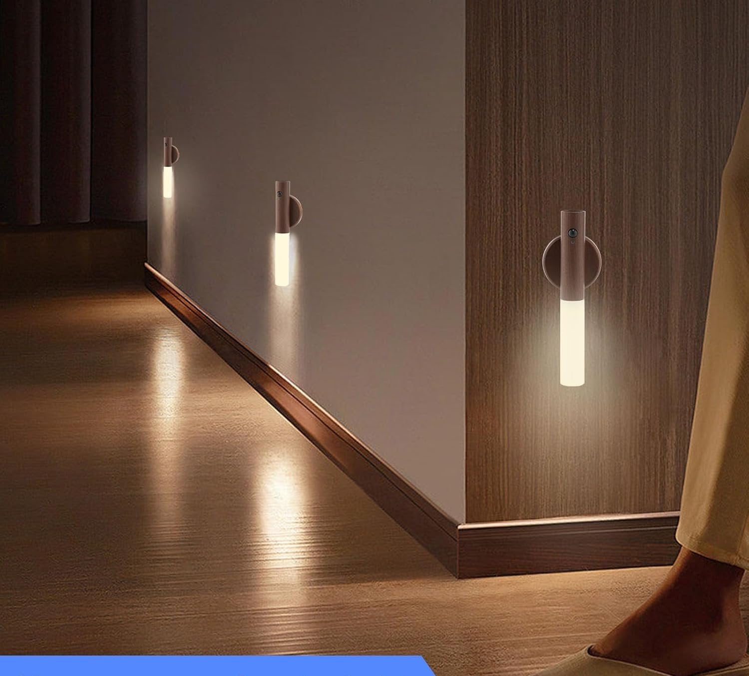 The night light's compact design and modern wooden art aesthetic make it a stylish addition to any room. Constructed from high-quality plastic, it ensures durability and longevity. The device's small footprint allows for seamless installation in tight spaces, such as closets or hallways. The adjustable sensitivity feature enables customization of the motion detection range, tailoring the light's response to your needs.