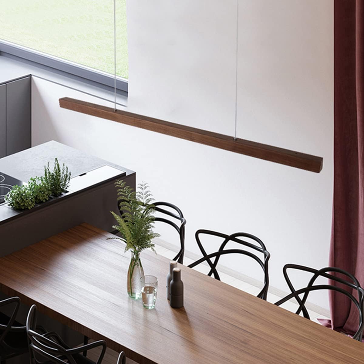 The Solid Wood Light Bar by Nordic Illumination is meticulously crafted from premium walnut or pine wood, ensuring both durability and a refined finish. The integrated LED technology offers energy-efficient, long-lasting illumination. Available in a sleek, minimalist design, this ceiling light complements a variety of interior styles, from contemporary to rustic.